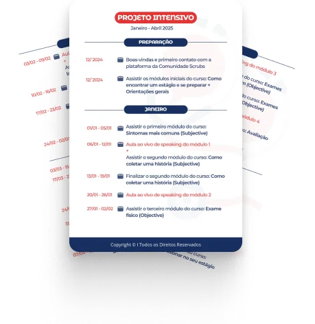 Todos os alunos desta turma receberão gratuitamente, na sua casa o Rotation Pocket Book! Esse livro prático oferece dicas valiosas e resumos dos “one-liners” essenciais, funcionando como uma “colinha” para apresentar seus pacientes em inglês com confiança. Ele não está à venda e somente nossos alunos que conseguem um estágio recebem. Essa será a primeira e última vez que todos que entrarem na turma receberão o livro.