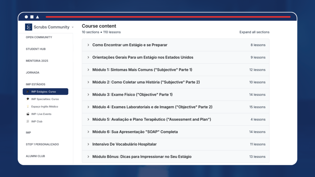 Todos receberão acesso ao curso IMP Specialties (o nosso curso de consulta com vocabulário e especificidades de cada especialidade médica, para você consultar em poucos segundos onde estiver).